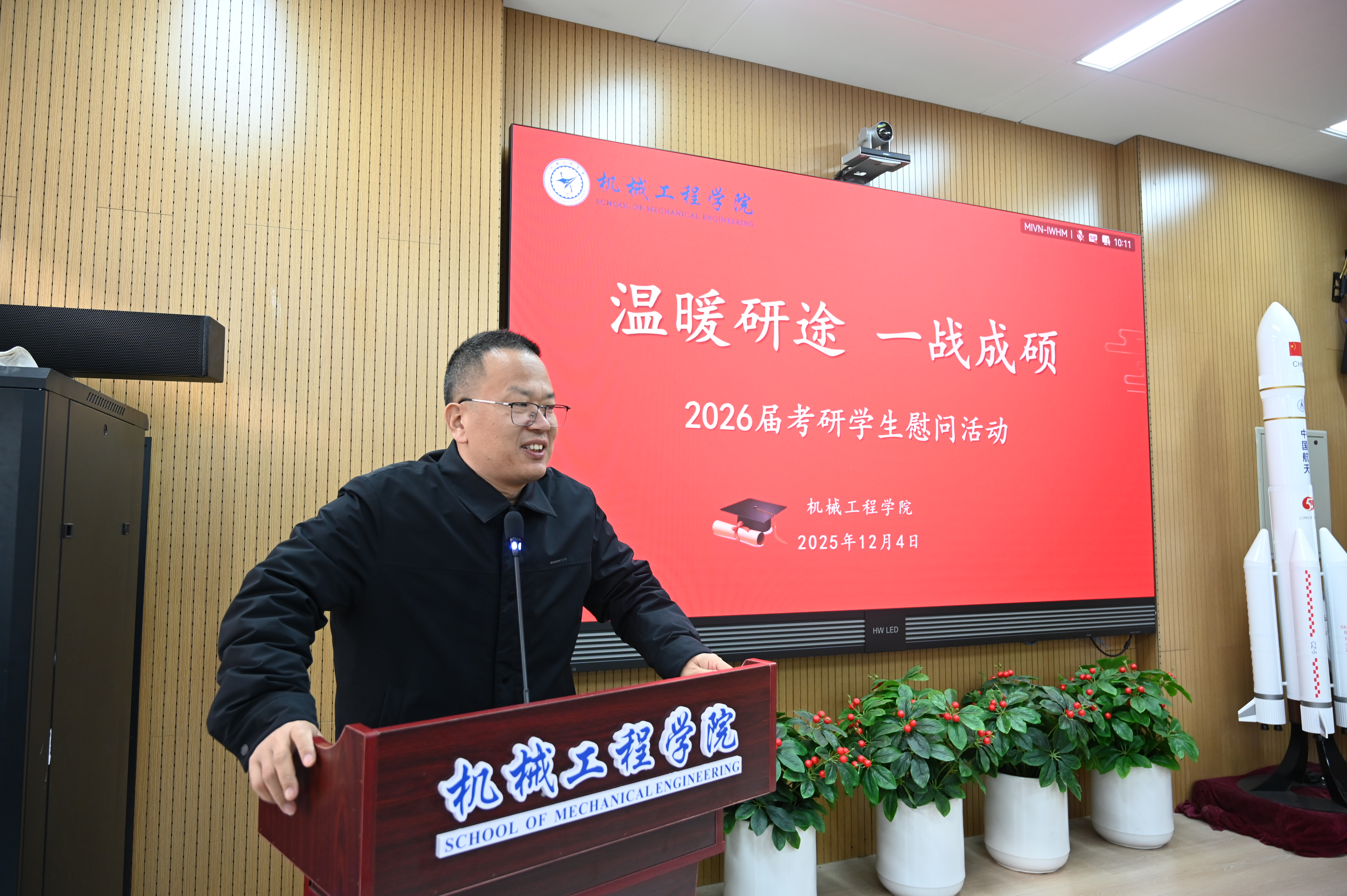 2026年全国硕士研究生招生考试已进入冲刺倒计时,为帮助考研学子坚定备考信念、缓解冲刺压力、提振应考士气,营造和谐温暖的备考氛围,12月4日上午,我院于08B205教室隆重召开2026届考研学子慰问活动,为奋战在冲刺一线的学子们送上专属温暖与殷切鼓励。党委书记罗昆、院长刘元朋、院长助理、机械制造系主任李征及2026届毕业生辅导员赵浩辰、杨立伟出席活动,活动由分团委副书记林允博主持,数十名考研学子代表到场参加。