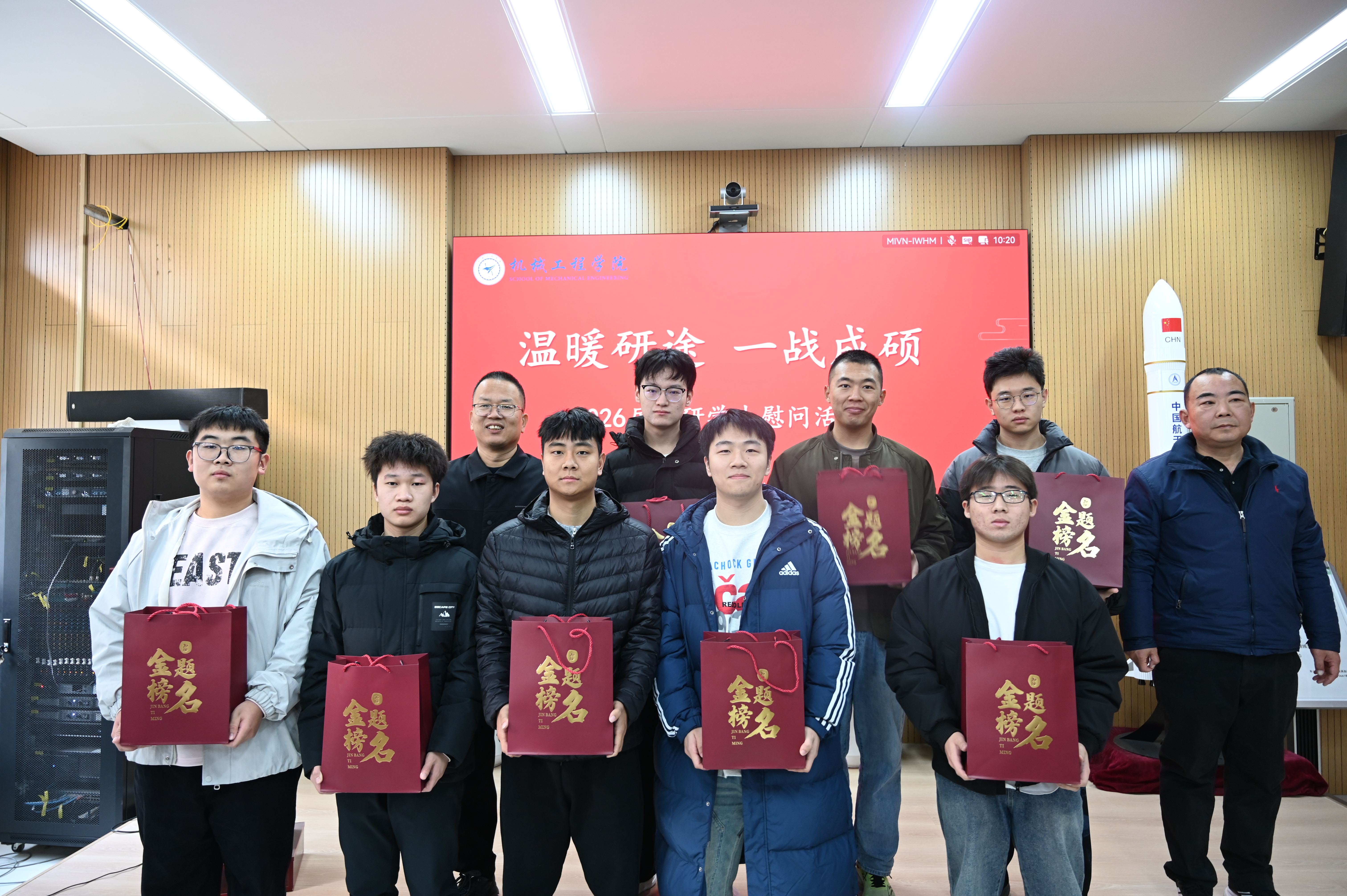 机械工程学院相关负责人表示,学院历来高度重视毕业生考研工作,始终将其作为人才培养的重要环节,从学业指导、心理疏导、资源保障、家庭经济困难学生考研期间伙食补助到复试帮扶,多措并举为考研学子搭建全方位支持平台。此次慰问活动既是学院关怀学子的具体体现,更是对大家冲刺备考的有力鼓劲,希望通过这份暖心关怀,帮助学子们卸下压力、轻装上阵,以更饱满的状态迎战考试。