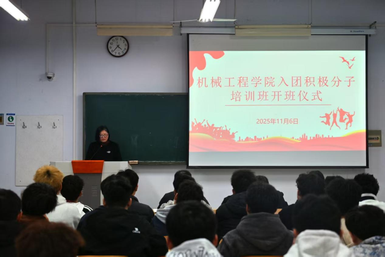 为进一步加强入团积极分子思想政治教育,严格规范团员发展程序,切实提升学员政治素养与责任意识。2025年11月6日至27日,机械工程学院分团委于龙子湖校区组织开展2025年下半年入团积极分子培训工作。学院党委副书记张丽娜出席开班仪式,校党委组织部组织科科长张心怡、学工办主任马牧青、分团委副书记林允博、2024级辅导员王秀丽担任培训主讲。全院共计43名入团积极分子参加本次培训。