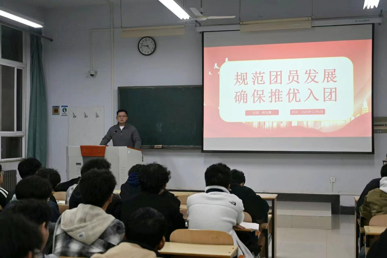 林允博老师以《规范团员发展,确保推优入团》为题开讲。他以新团员发展核心标准为切入点,系统阐释团员发展的全流程规范,着重强调“政治标准为首要前提,年龄条件为基础门槛”的核心原则。授课中,林老师明确要求严格执行发展团员工作流程,扎实推进“三会两制一课”制度落地见效,通过规范化流程、制度化保障,持续提升团员发展质量,为团组织持续注入政治素养过硬、思想作风优良、综合能力突出的新鲜血液,不断夯实团组织的凝聚力与战斗力。