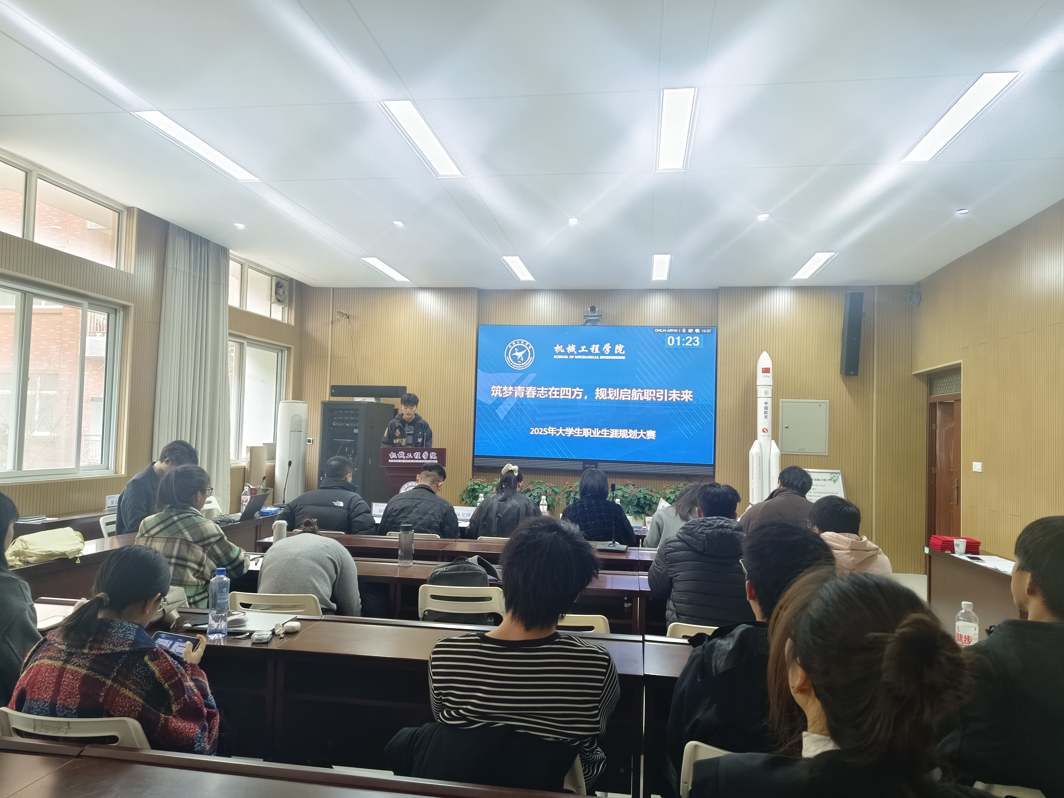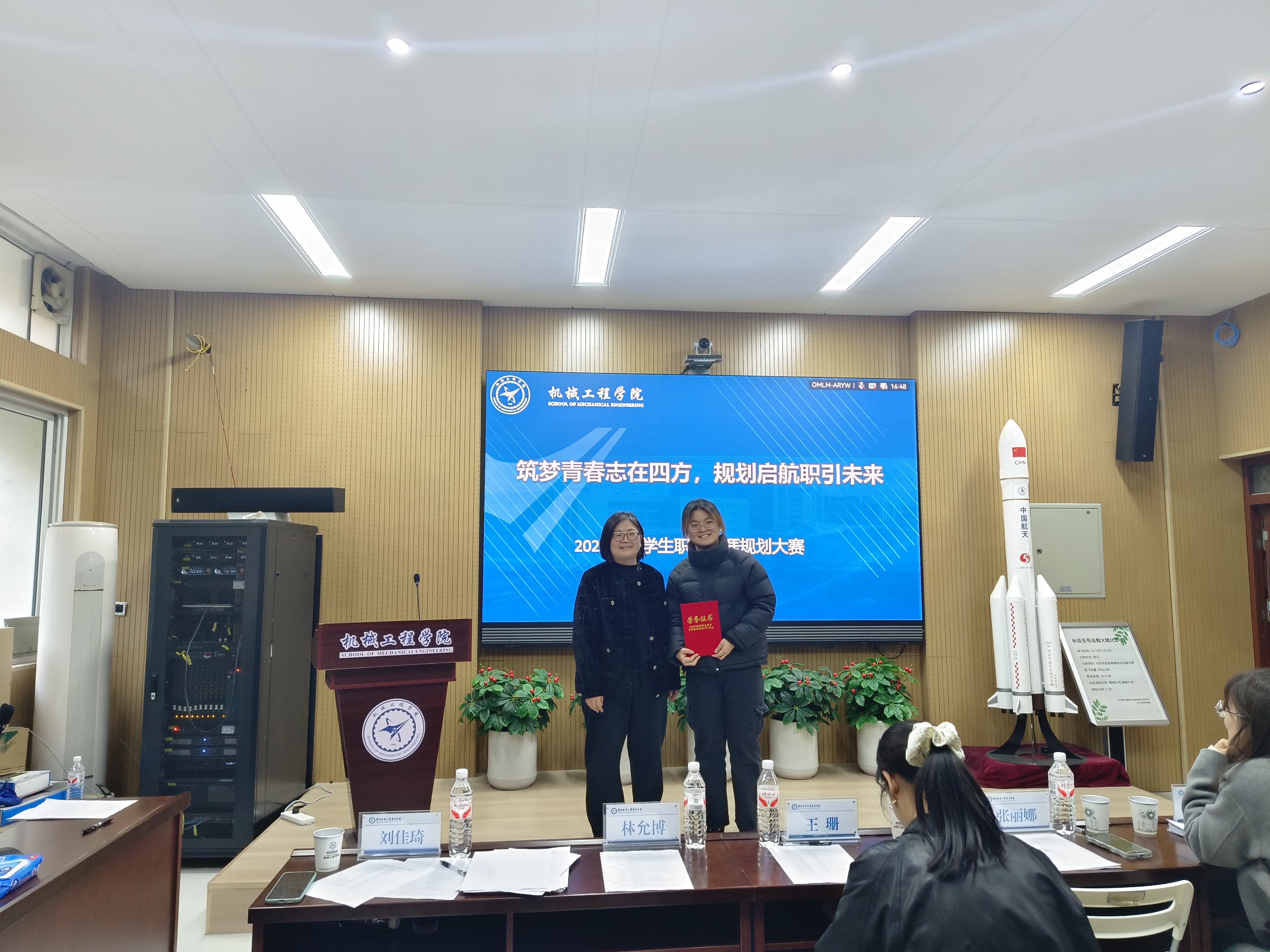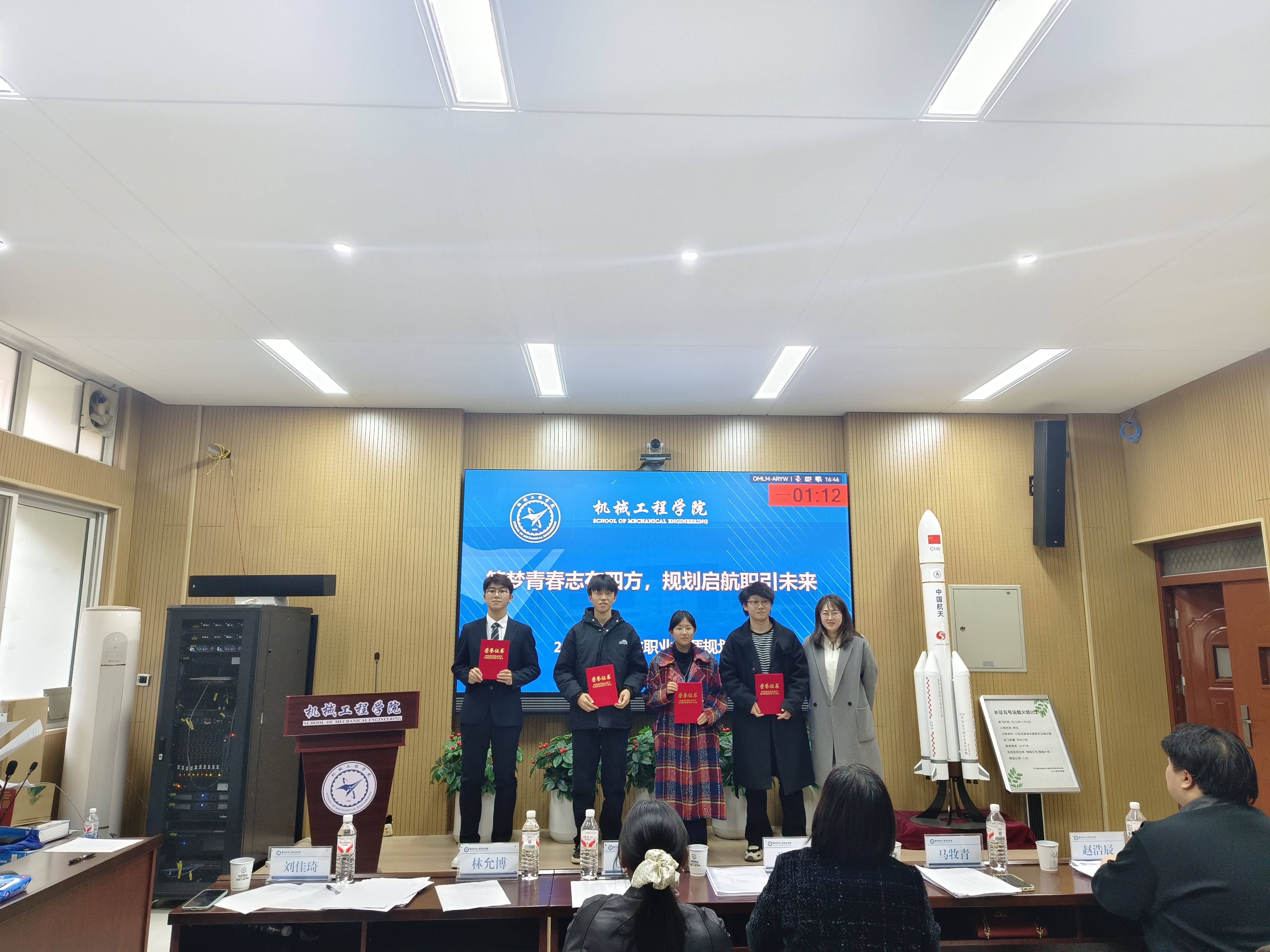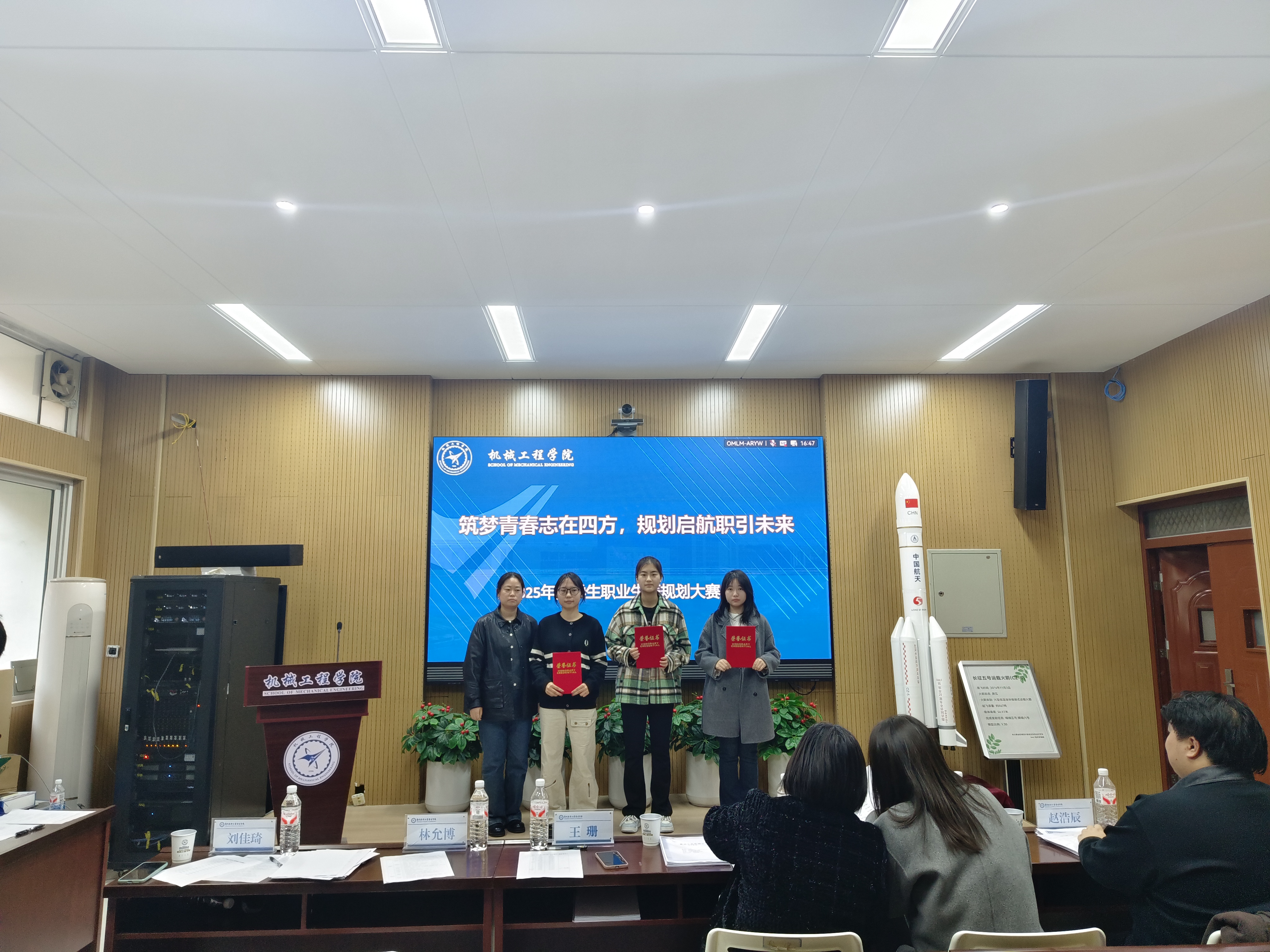 此次比赛设有成长赛道和就业赛道,经过初赛阶段的激烈比拼,最终有14位同学脱颖而出,成功晋级决赛。决赛于2025年11月28日在08b205举办。特邀请我院党委副书记张丽娜、校职业发展与就业指导办公室主任王珊、学工办主任马牧青、分团委副书记林允博、2022级辅导员赵浩辰以及2025级辅导员刘佳琦担任评委。