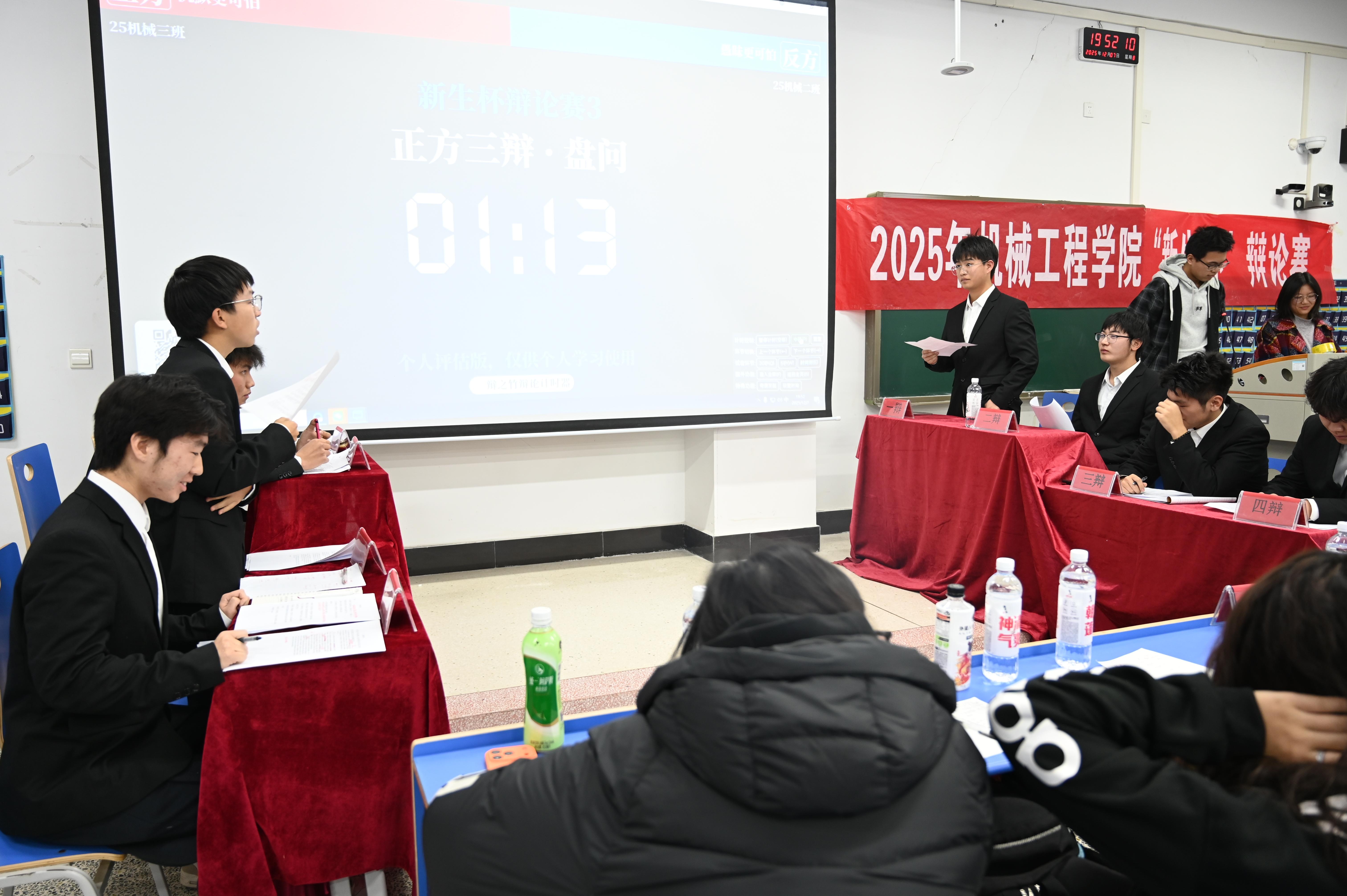 12月7日晚19点,机械工程学院2025级“新生杯”辩论赛决赛在03B106教室精彩收官。本次赛事以“繁荣校园文化、厚植思辨氛围”为核心目标,旨在搭建新生交流平台,全方位锤炼大学生的逻辑思维、语言表达与团队协作能力,为学院文化建设注入青春活力。