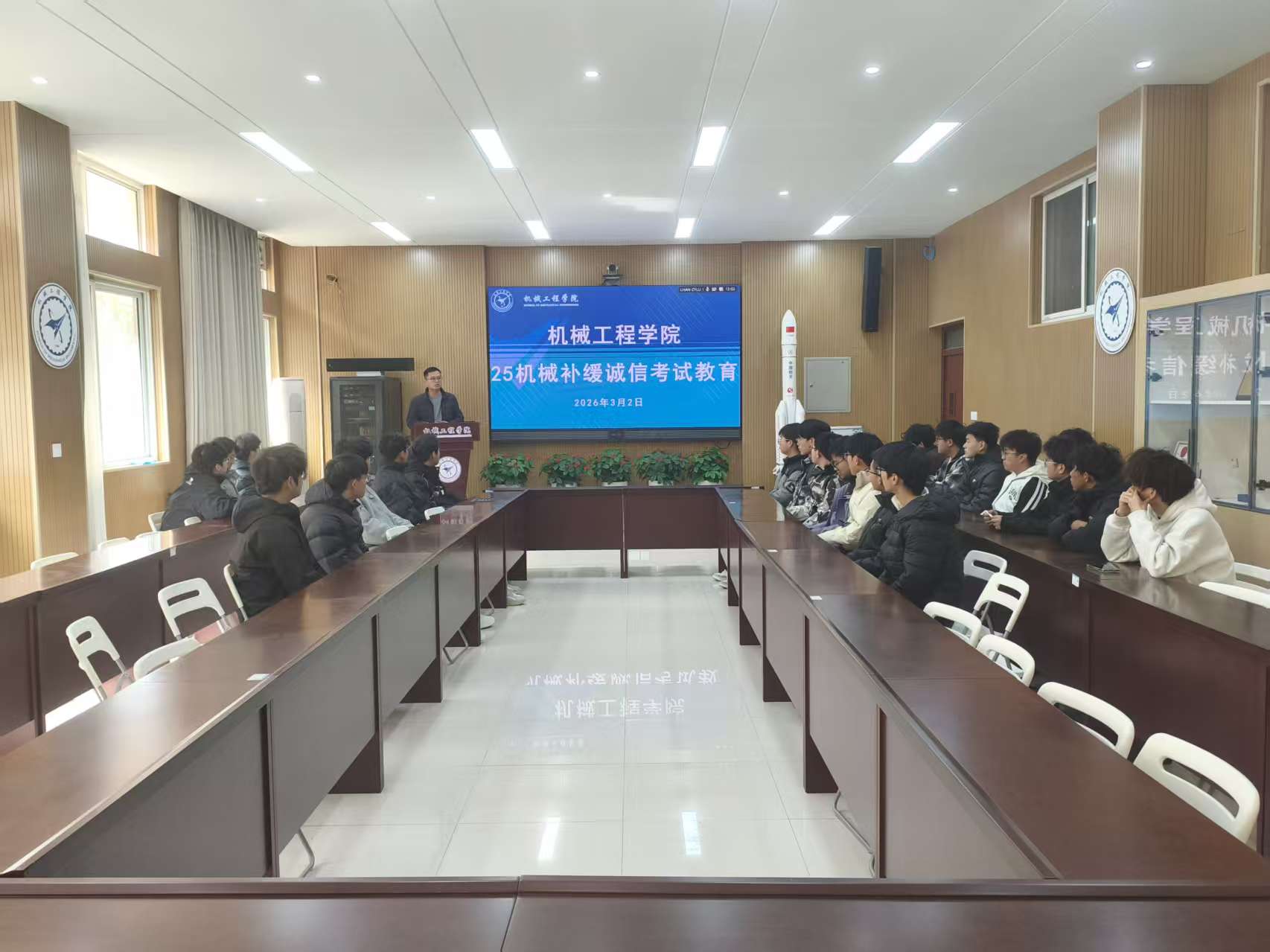 此次补缓考诚信教育主题班会,精准对接补缓考学生的实际需求,既明确了纪律要求,又提供了备考指导,有效强化了学生的诚信意识和纪律观念,为学院营造风清气正的补缓考环境、深化学风建设奠定了坚实基础。(图/机械工程学院 文/马牧青 审核/张丽娜)