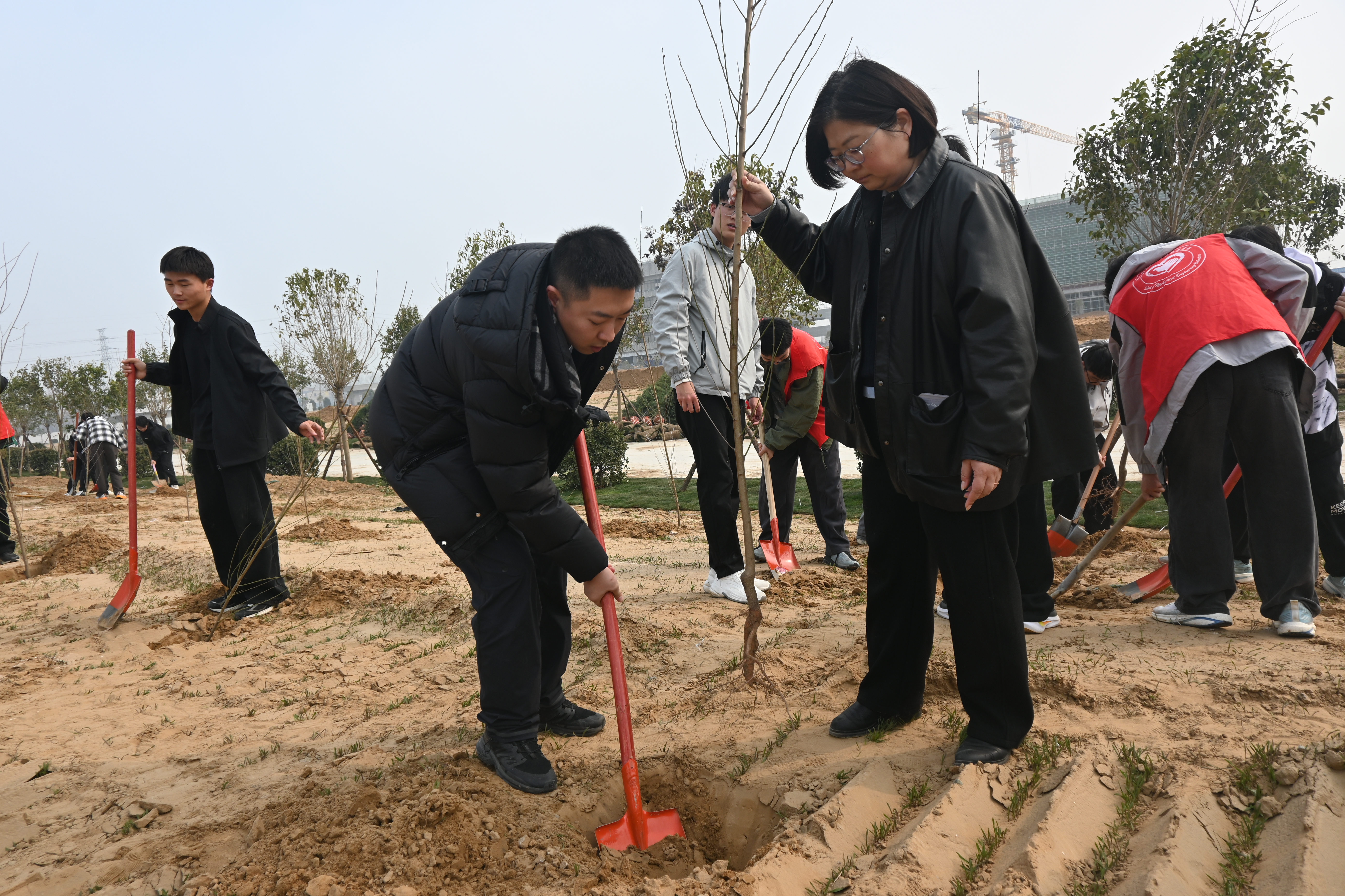 春回大地万物苏,植绿护绿正当时。恰逢3月12日全国植树节,为深入践行雷锋精神,传递绿色环保理念,在学院党委副书记张丽娜、辅导员林允博、刘佳琦老师的带领下,我院青年学子走进航空港新校区开展“学雷锋、种新绿”义务植树活动,以青春之力播撒绿色希望,用实际行动诠释新时代青年的责任与担当。