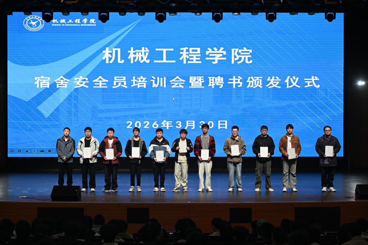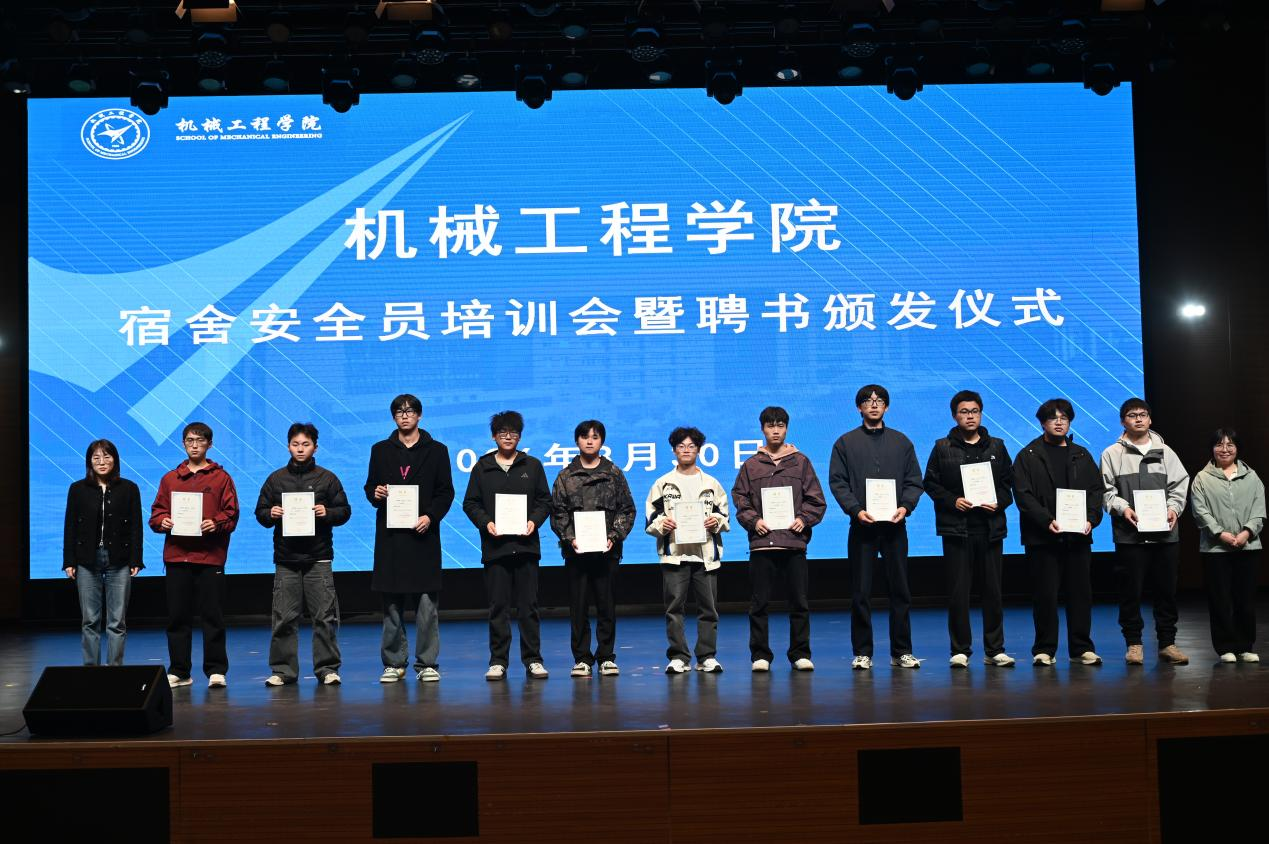 为夯实学院宿舍安全工作基础,切实提升宿舍安全员履职能力与责任意识,3月30日晚,机械工程学院于演艺厅召开宿舍安全员专题培训会暨聘书颁发仪式。学院党委副书记张丽娜、学生工作办公室主任马牧青、分团委副书记林允博及全体辅导员出席仪式,学院264名宿舍安全员参加此次会议。