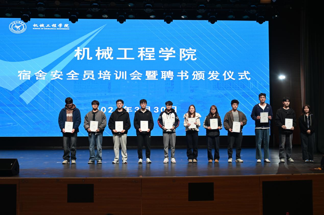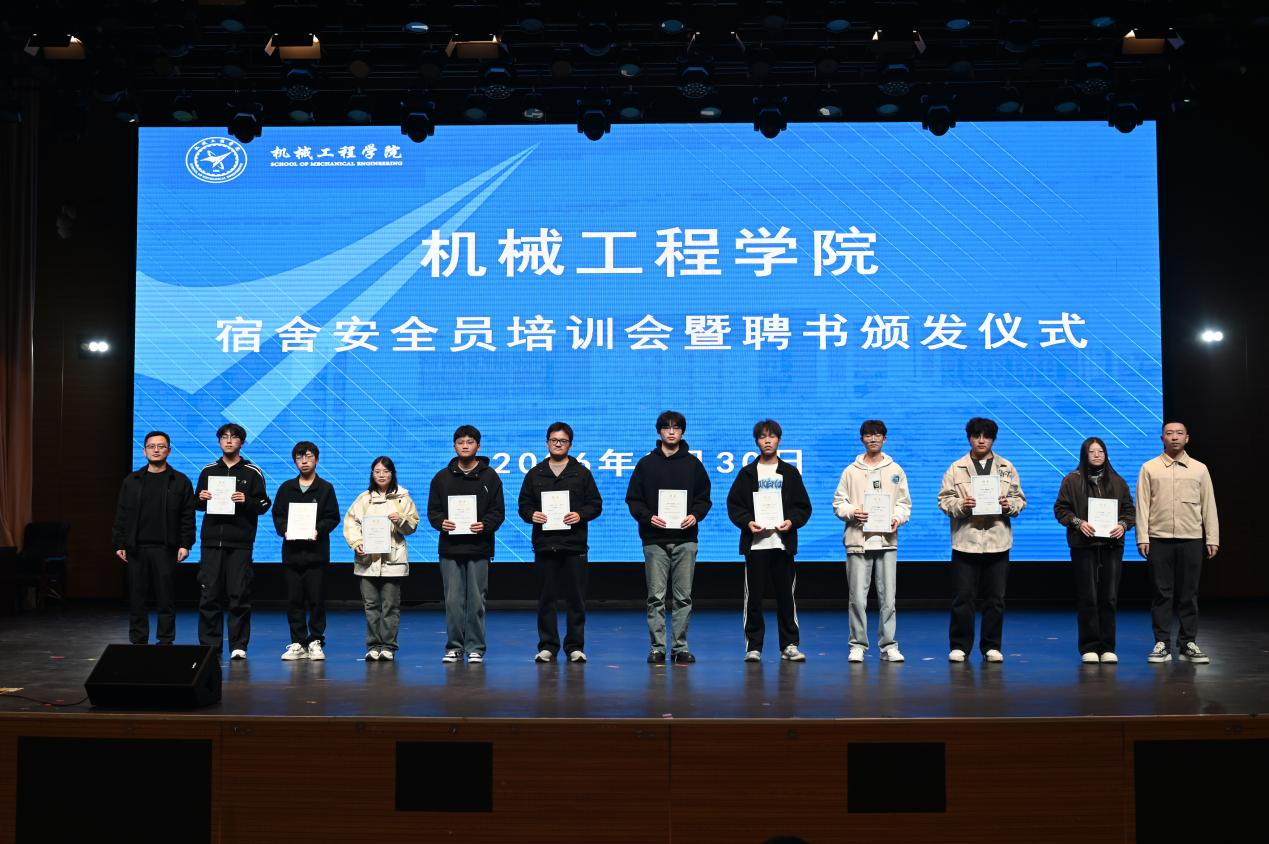 首先,学院辅导员为各年级宿舍安全员代表颁发聘书并合影留念。一张张聘书,既是对同学们责任担当的认可,更是对今后安全工作的郑重托付,让大家在庄重的仪式中进一步增强责任意识、明确工作方向。