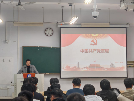 开班仪式后,学生第四党支部杨立伟以《中国共产党章程》为题开展本次培训的第一讲。他从“党的最高理想和最终目标” 切入,系统讲解了党章中关于党员的义务与权利、党的组织制度、党的中央组织与地方组织及基层组织建设、党的干部选拔与纪律要求、党的纪律检查机关职责与党组工作规则,以及党和共青团的关系等核心内容。他强调积极分子应以党员身份严格要求自己,坚定理想信念,勇于担当,为民族复兴伟业注入蓬勃力量。