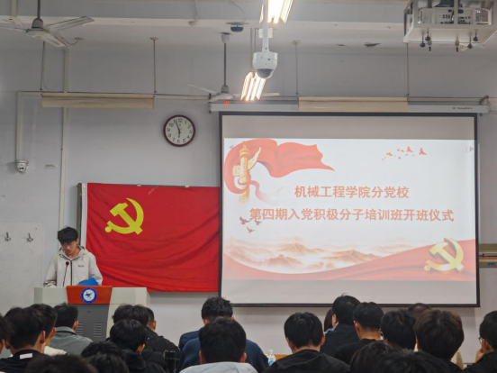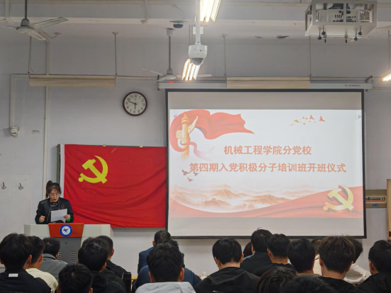 10 月 14 日晚,机械工程学院分党校第四期入党积极分子培训班开班仪式在 07c205 教室顺利召开。学院党委书记罗昆、学院党委副书记张丽娜、学工办主任马牧青、分团委副书记林允博,以及各学生党支部书记出席仪式,61 名入党积极分子全程参与。仪式由党委副书记张丽娜主持。