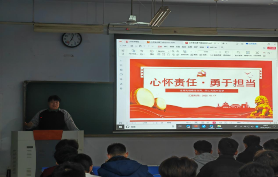 10月17日晚,培训第四讲由学生第三支部书记赵浩辰授课,主题为《心怀责任,勇于担当》,他强调担当就是一事当前,勇挑重担、敢于负责。同时提出一个合格的共产党员必须要做到愿担当,敢担当,善担当。作为新时代党员大学生要把责任扛在肩上,把行动落在实处,努力成长为敢担当,能吃苦,肯奋斗的新青年。