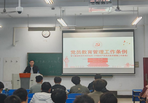 10月14日晚,学生第四党支部书记杨立伟以《中国共产党章程》为题开展党课第一讲。他以“党的最高理想和最终目标”为切入点,系统讲解了党章中关于党的组织制度、党的中央组织与地方组织及基层组织的建设以及党的干部选拔与纪律要求等内容,明确了积极分子的入党动机和奋斗目标。